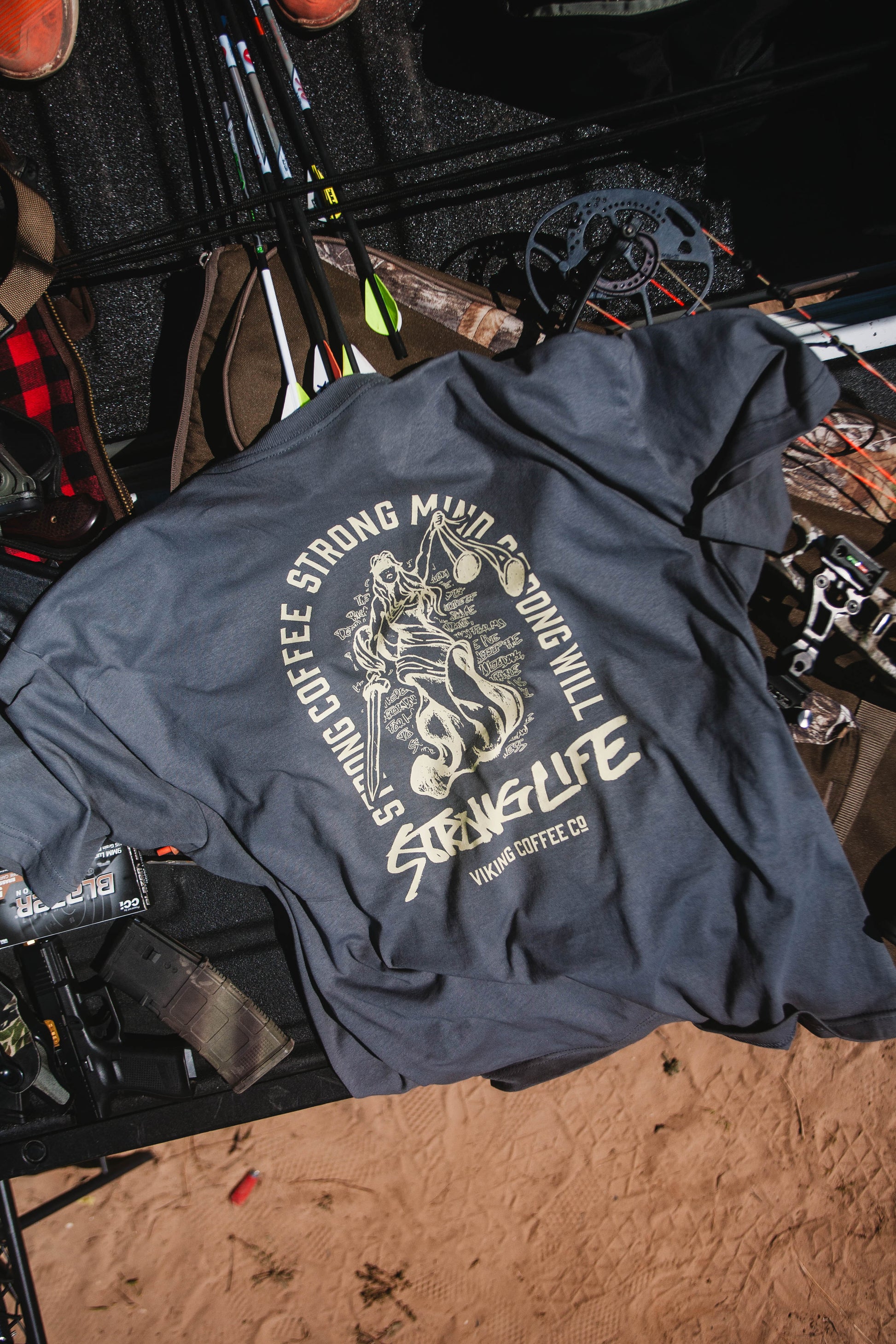 Get ready to embody the Viking Coffee Co ethos with the Strong Life Tee. Inspired by our pursuit of personal excellence, this tee reflects the drive to move forward, do the right thing, be self-sufficient, and lead by example—fueled by a strong mind, body, will, and, of course, great coffee. Crafted from a 100% American-made premium cotton blend, this fitted tee in a charcoal/tan colorway offers unmatched comfort and durability, looking and feeling great whether you’re hitting the gym or enjoying your morning brew. Available in sizes Small to 3XL.